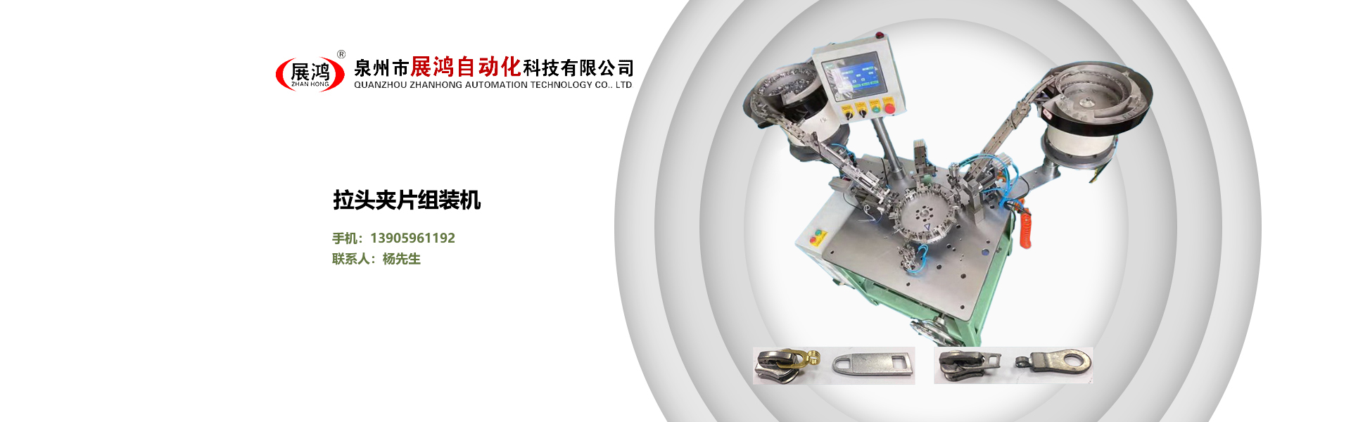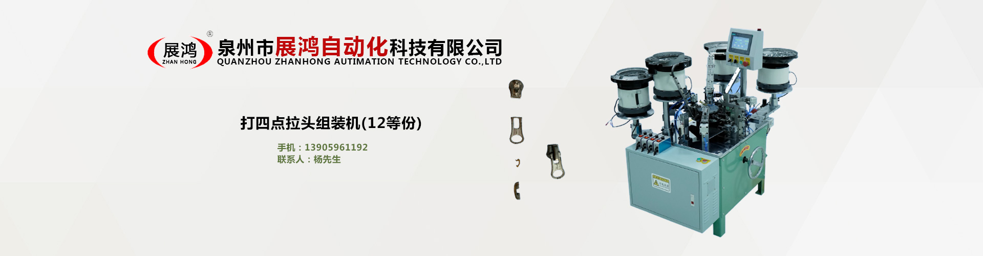??泉州市展鴻自動化科技有限公司始創(chuàng)于2003年,是一個集研發(fā)、制造、銷售為一體的現(xiàn)代化公司,專業(yè)從事研發(fā)、生產(chǎn)各類型號的全自動拉鏈頭裝配機。泉州市展鴻自動化科技有限公司始創(chuàng)于2003年,是一家集研發(fā)、生產(chǎn)、銷售、服務于一體的現(xiàn)代化拉鏈頭設備智能制造生產(chǎn)企業(yè):專業(yè)從事研發(fā)、生產(chǎn)各類型號的全自動拉鏈頭智能裝配機。亦可根據(jù)不同客戶的需求,提供適合客戶自身需要的“私人定制”式專用拉鏈頭設備及自動檢測拉頭品質(zhì)一體機。泉州市展鴻自動化科技有限公司始創(chuàng)于2003年,是一家集研發(fā)、生產(chǎn)、銷售、服務于一體的現(xiàn)代化拉鏈頭設備智能制造生產(chǎn)企業(yè):專業(yè)從事研發(fā)、生產(chǎn)各類型號的全自動拉鏈頭智能裝配機。亦可根據(jù)不同客戶的需求,提供適合客戶自身需要的“私人定制”式專用拉鏈頭設備及自動檢測拉頭品質(zhì)一體機。
